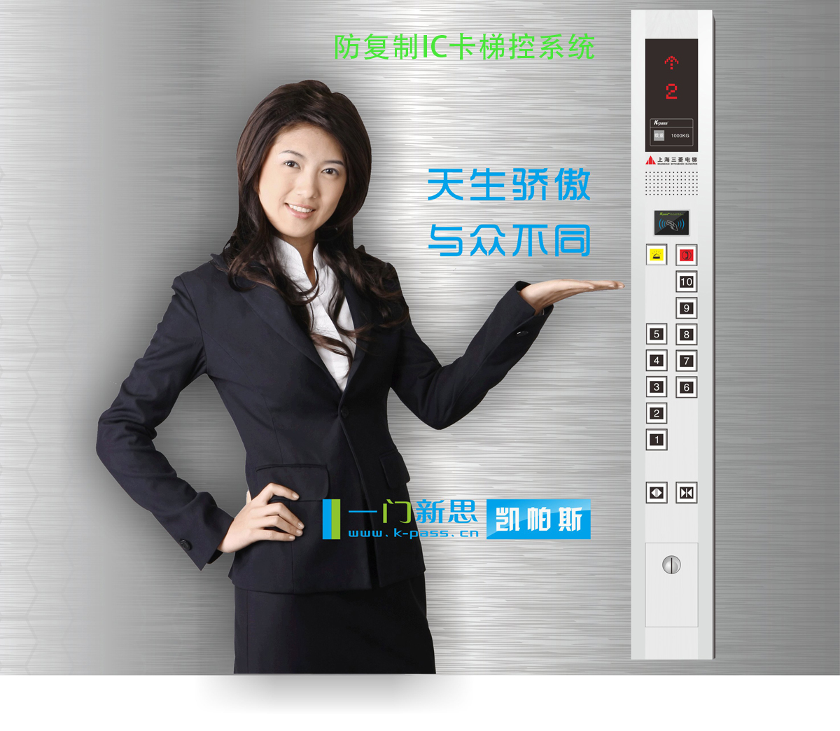 与小区单元门门禁类似。使用电梯时,必须刷卡呼叫电梯。如果没有IC卡,则不能使用电梯,这样做能够保障电梯不被闲杂人员随意使用,控制电梯的无效运行。即能保障业主的安全,又能使电梯节能降耗,更能提升小区的生活档次。